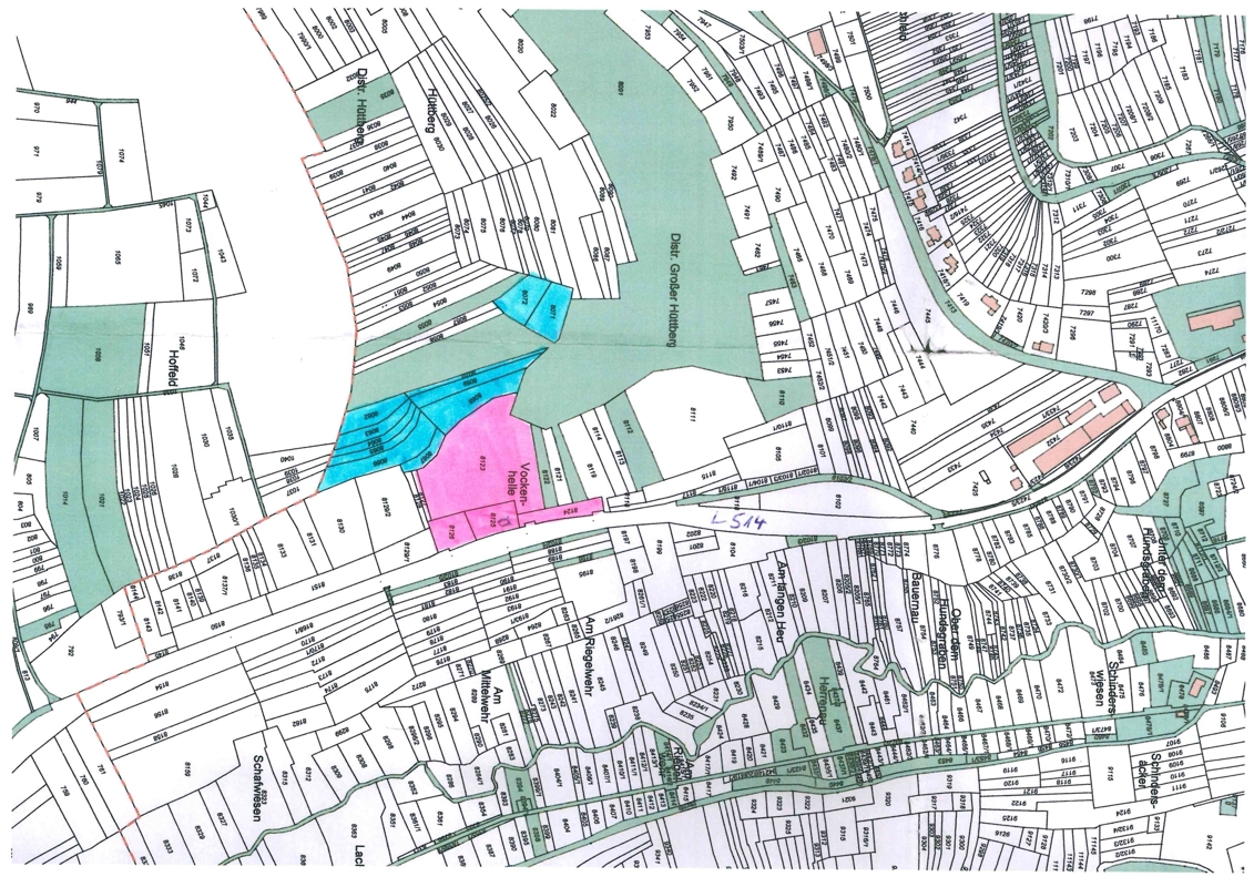 Die Grundstücke sind auf die Flurstücke 8062, 8063, 8064, 8065, 8066, 8067, 8068, 8089, 8071, 8072, 8123, 8124, 8125 und 8126 verteilt (siehe Lageplan).