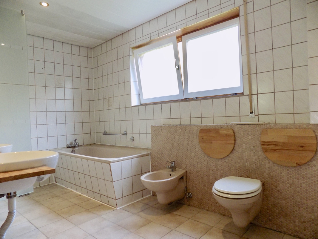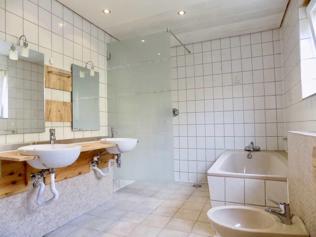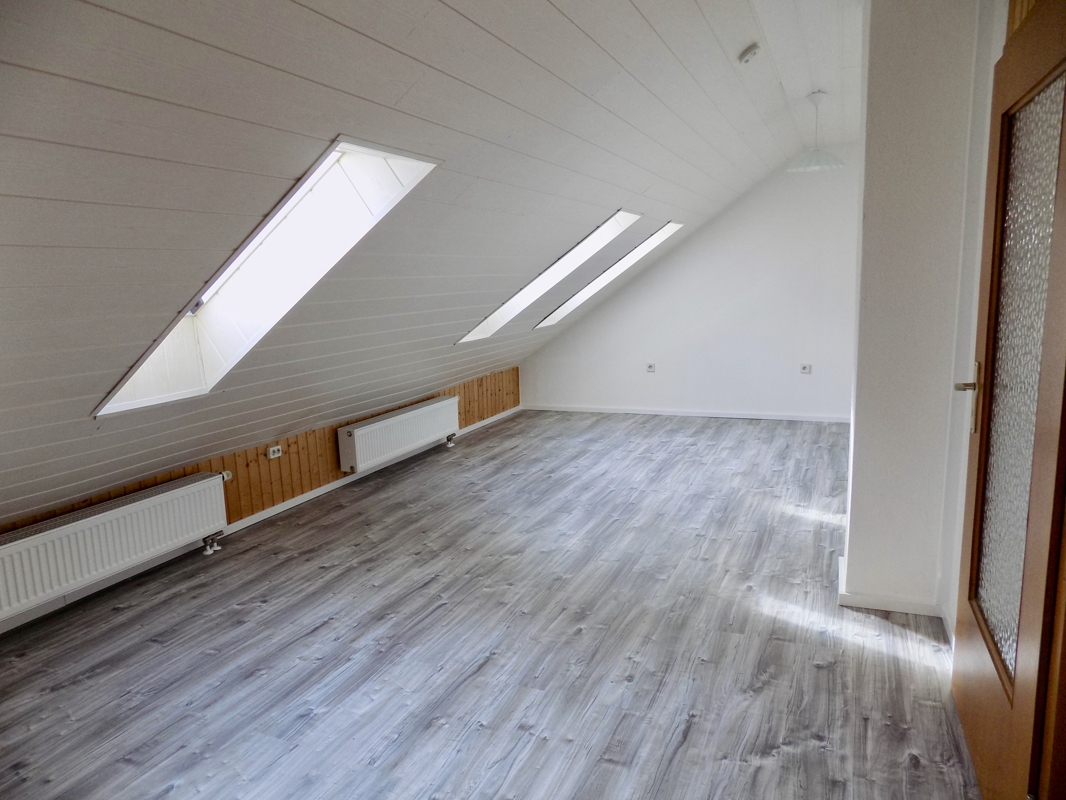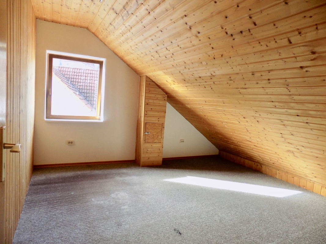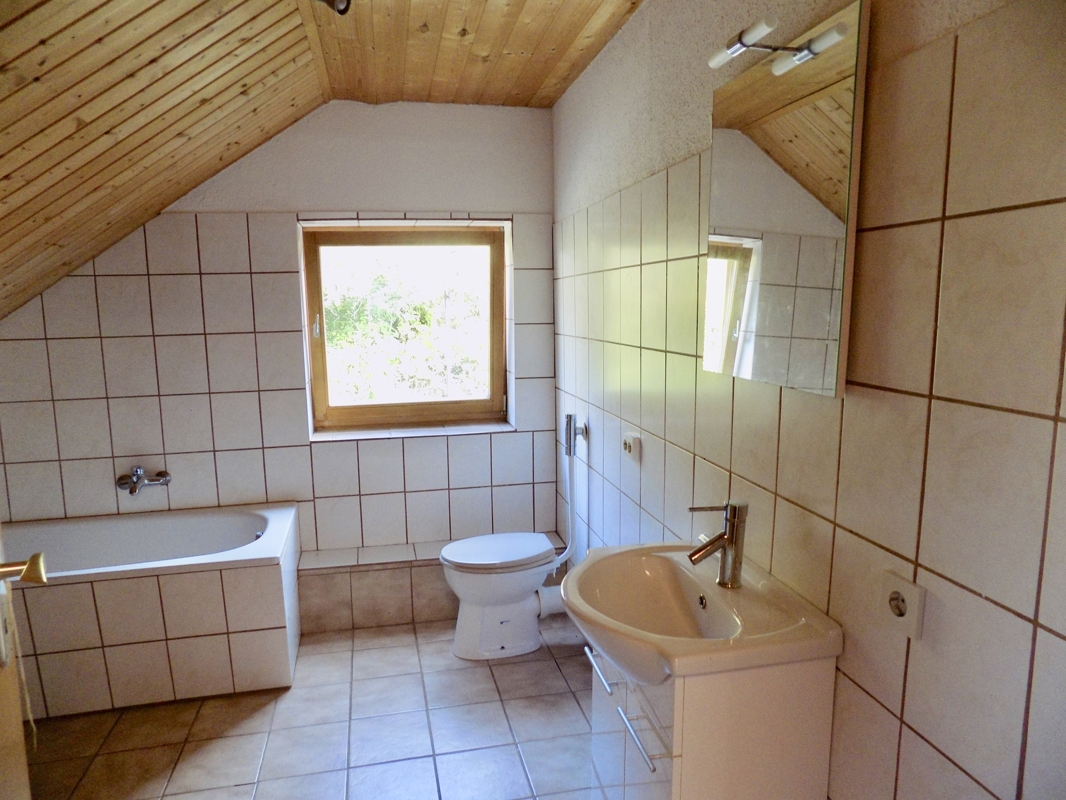 Im Dachgeschoss befindet sich ein helles Badezimmer mit WC, Badewanne und zwei weitere Zimmer. In einem davon lässt sich mit ein wenig Aufwand eine Kochnische einrichten, somit könnte man die obere Etage als eine separate Wohneinheit nutzen.