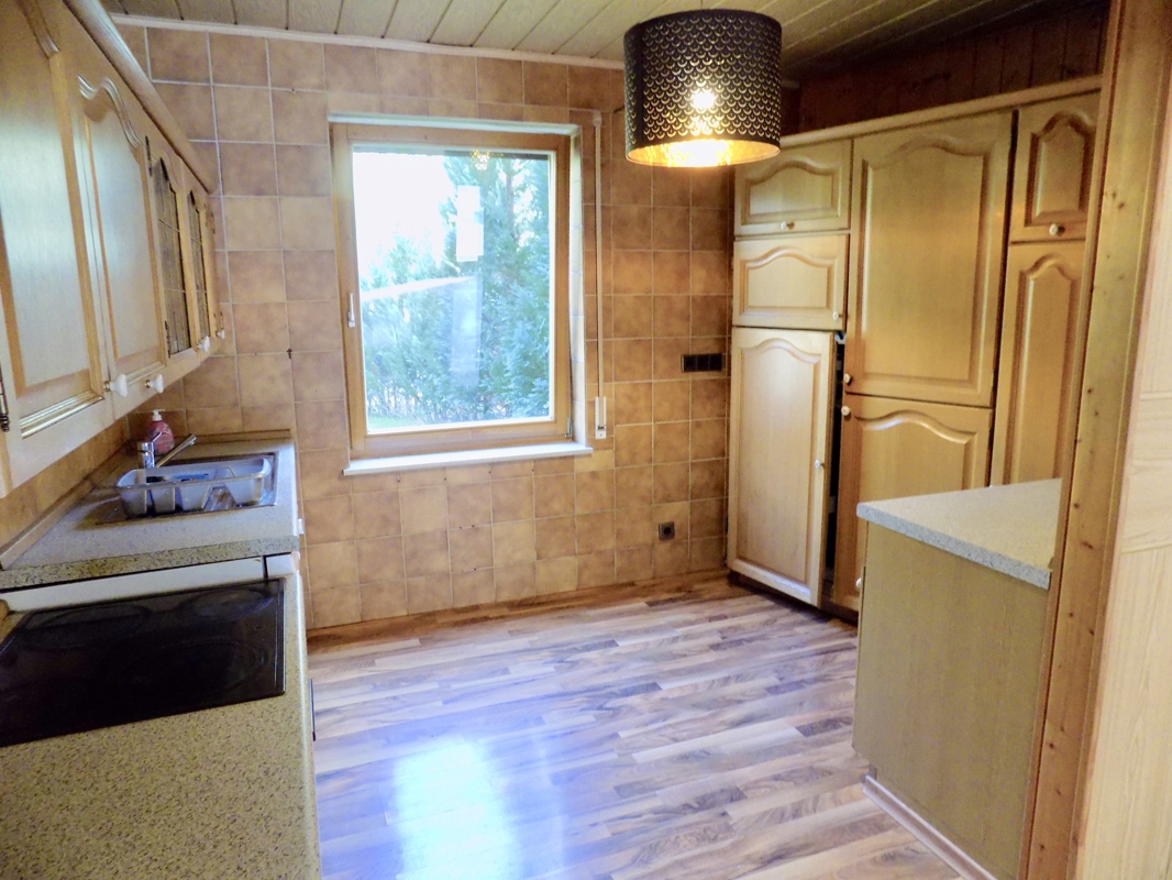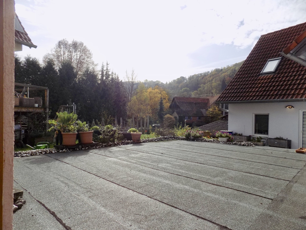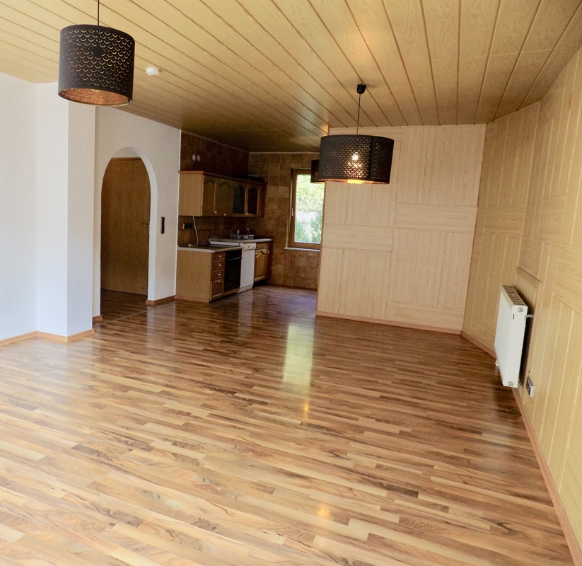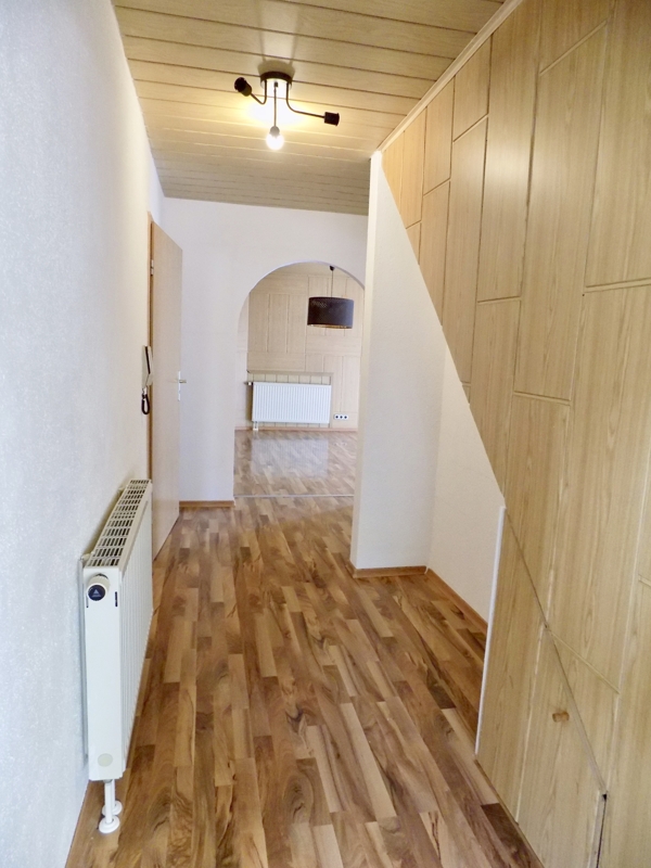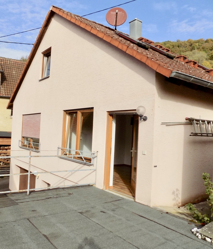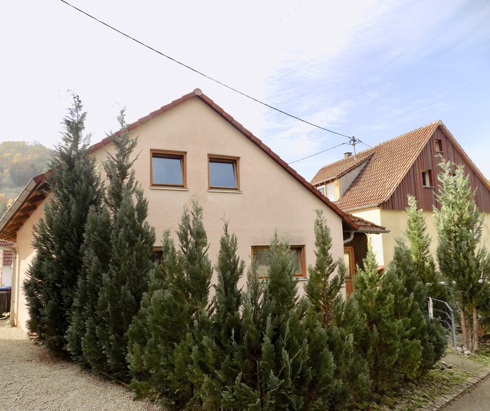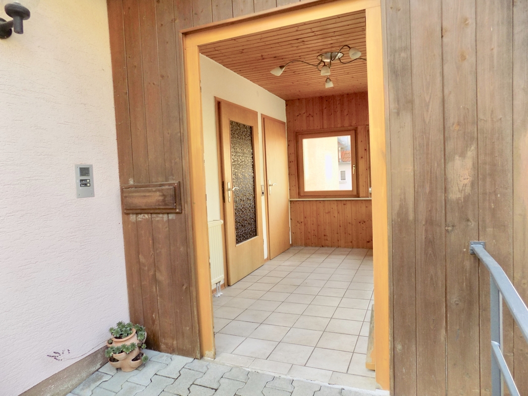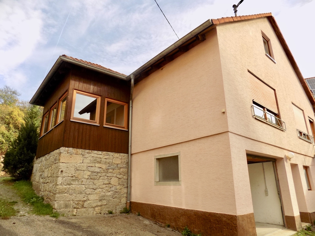 Das idyllisch gelegene Haus wurde im Jahr 1990 auf den Mauern der ehemaligen Scheune in Massivbauweise erstellt.Die ca. 110 qm verteilen sich auf zwei Etagen, welche jeweils über einen separaten Eingang verfügen. Über den einladenden Windfang erreicht man barrierefrei das Erdgeschoss mit ca. 74qm. Hier befindet sich das geräumige Badezimmer mit zwei Waschbecken, WC, BD, Badewanne und bodenebene Dusche, ein Schlafzimmer, offene Küche und ein lichtdurchflutetes Wohn-Essbereich mit dem Ausgang ins Freie. Hier kann das Garagendach zur Hälfte als Terrasse genutzt werden (Nutzungsrecht vorhanden).