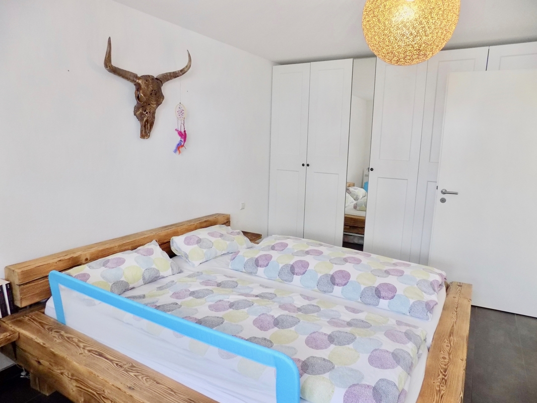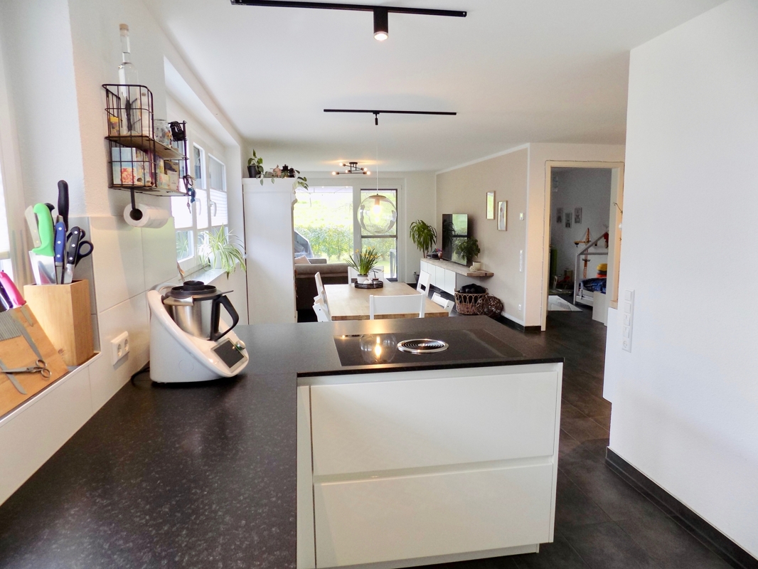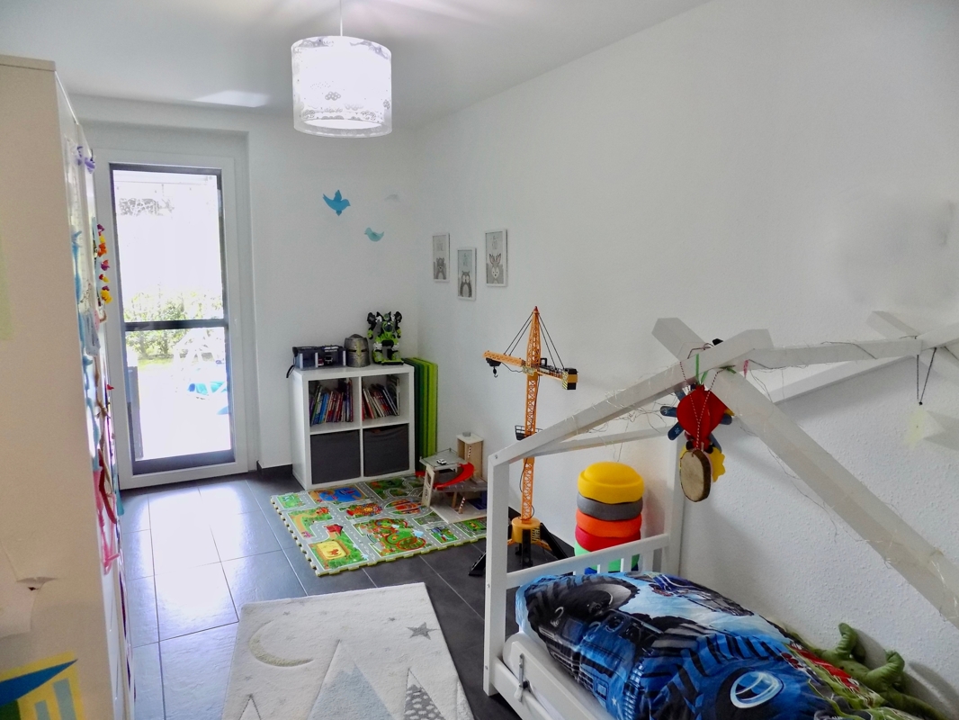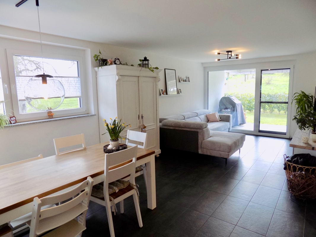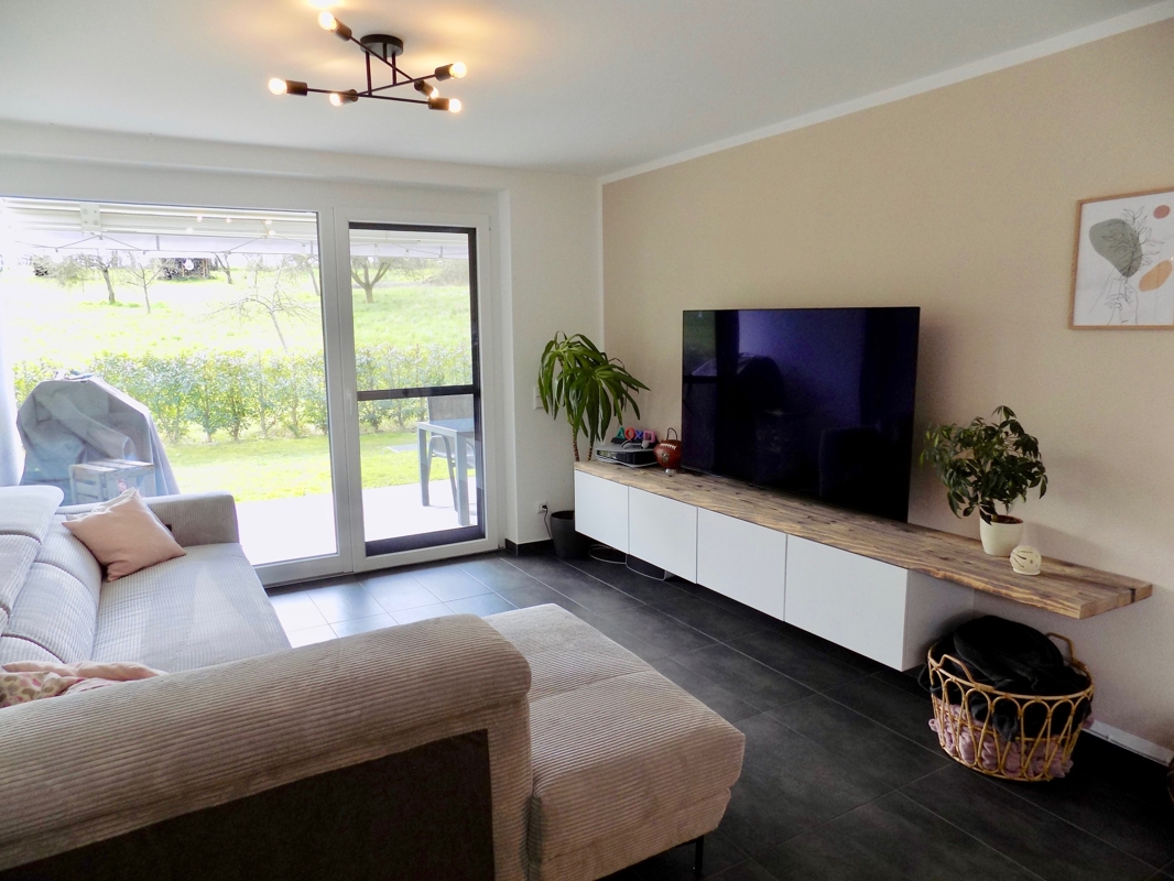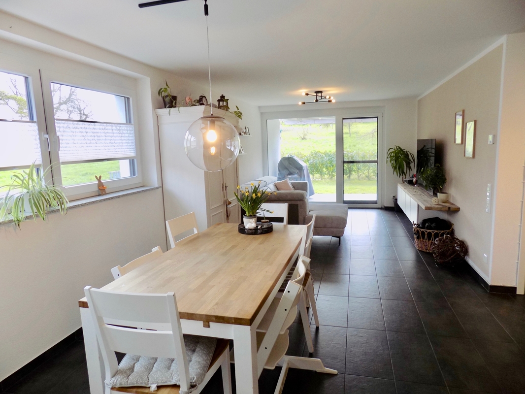 Die 113 qm Wohnfläche verteilen sich auf das große, helle Wohnzimmer mit Essbereich und angrenzender offenen Küche incl. moderner EBK. Hier ist auch der Ausgang zur großen, sonnigen Terrasse und Garten, was vielfältige Möglichkeiten der Freizeitgestaltung für die ganze Familie bietet. Ebenso zwei Kinderzimmer, großzügiges Elternschlafzimmer, Badezimmer mit begehbarer Dusche, separates Gäste-WC und Abstellraum.